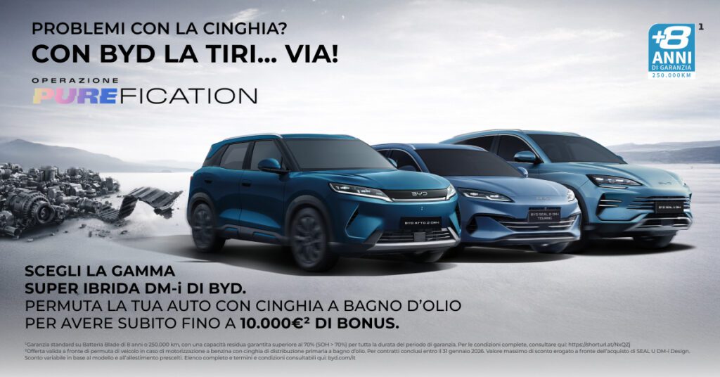 La gamma BYD DM-i unisce innovazione, prestazioni fluide e gestione ottimizzata dell’energia in ogni situazione di guida: oggi entrare nel futuro è ancora più semplice e conveniente grazie all’Operazione PureFication.