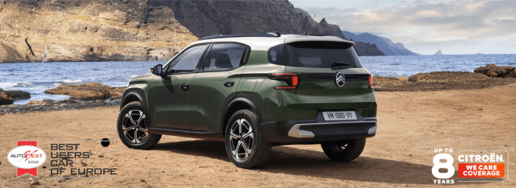 La scelta della motorizzazione è libera: benzina, ibrido da 145 CV o 100% elettrica con autonomia fino a 400 km. Tutto questo a partire da 18.900 €, con rate da 129 €/mese e garanzia estesa fino a 8 anni con Citroën We Care.